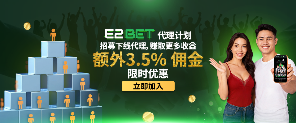 E2BET 代理计划 招募下线代理 周/月佣金额外 +3.5% 限时加赠!
